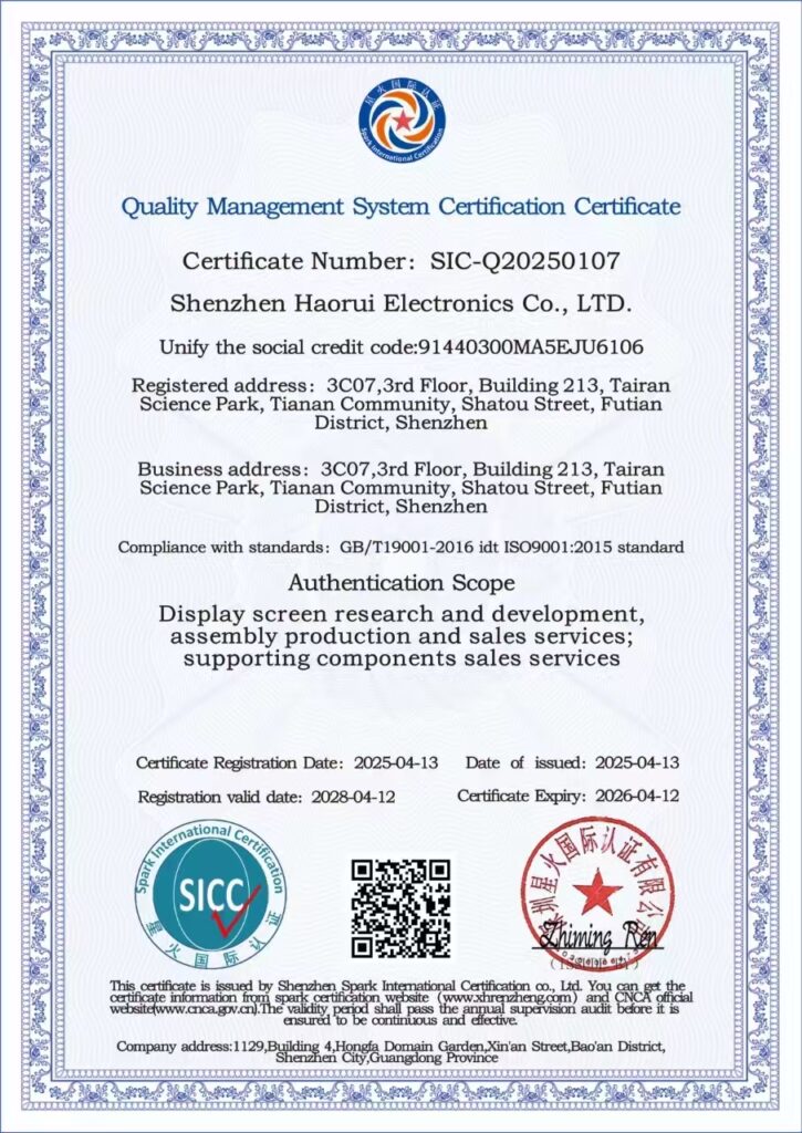 皓瑞电子将不断倾注研发的投入与创新,持续推动质量的改善与提升,致力成为全球领先的显示领域专业供应商!